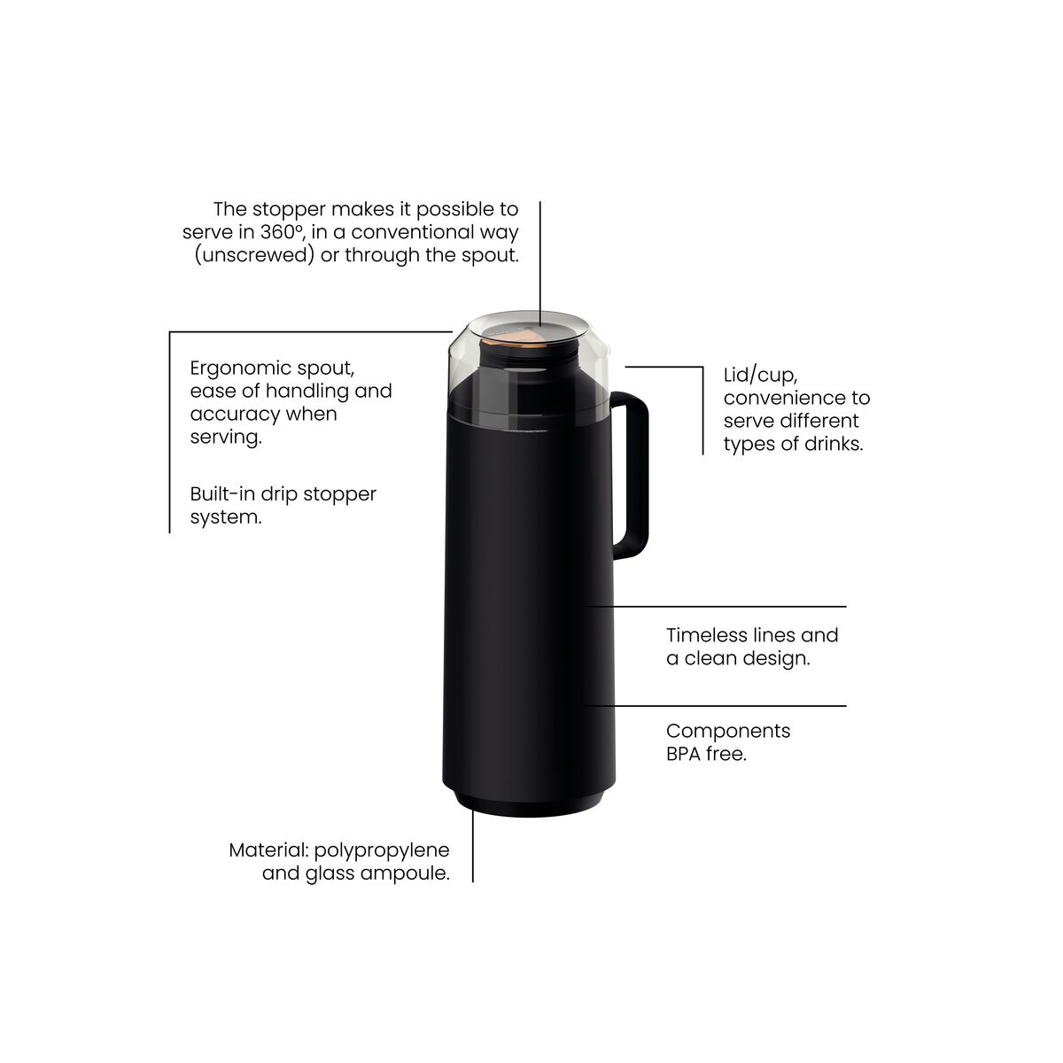 TRAMONTINA EXATA VACUM INSULATED THERMO BOTTLE 1L-BLACK 61637/103