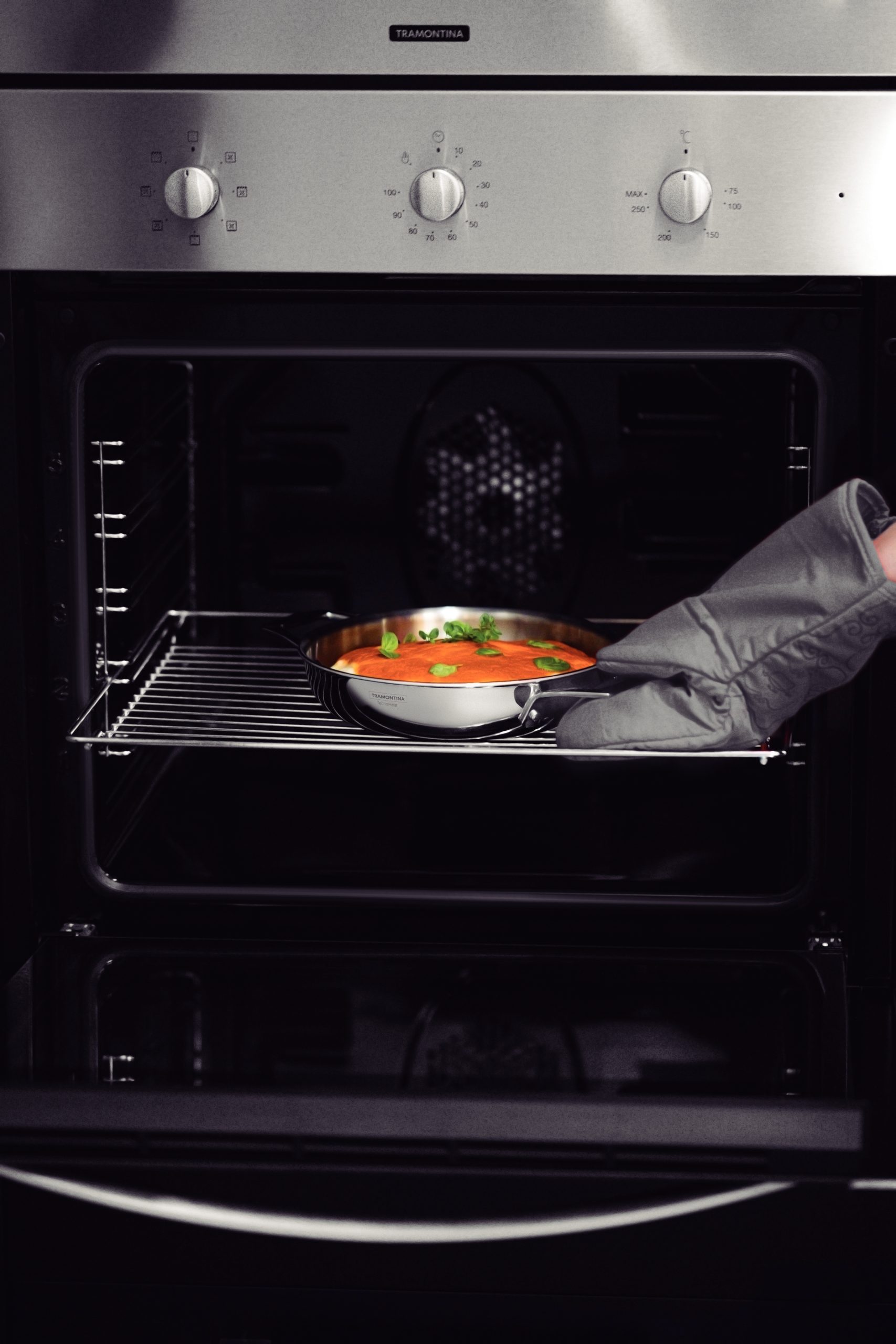 The maximum capacity for cooking is 3/4 of the total volume of the item. Practicality is the keyword of the Grano frying pan. In addition to its triple-ply body, which ensures faster cooking, its design without corners makes it much easier to clean. The triple-ply body (stainless steel + aluminum + stainless steel) distributes heat evenly, resulting in quick and uniform cooking, saving power and keeping food warm for longer. The frying pan has a modern design and highly shiny finish, and can be set on the table. It can go in the oven to gratin or finalize dishes at a maximum temperature of 260°C. It can be used on electric, gas, induction, and vitroceramic cookers. Safe for daily use in the dishwasher.