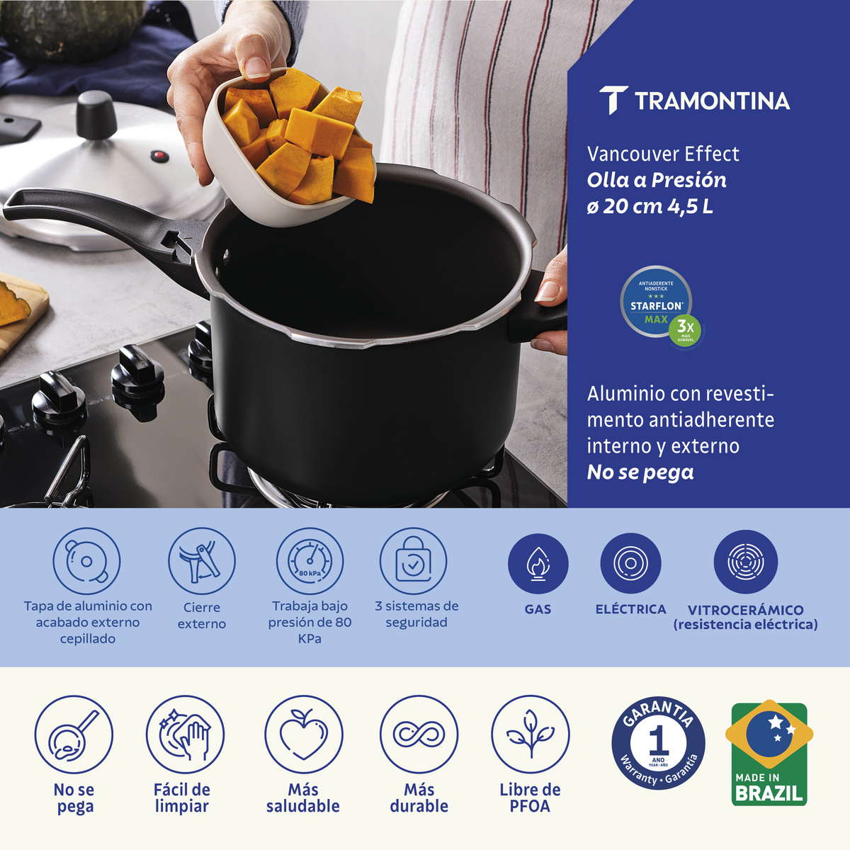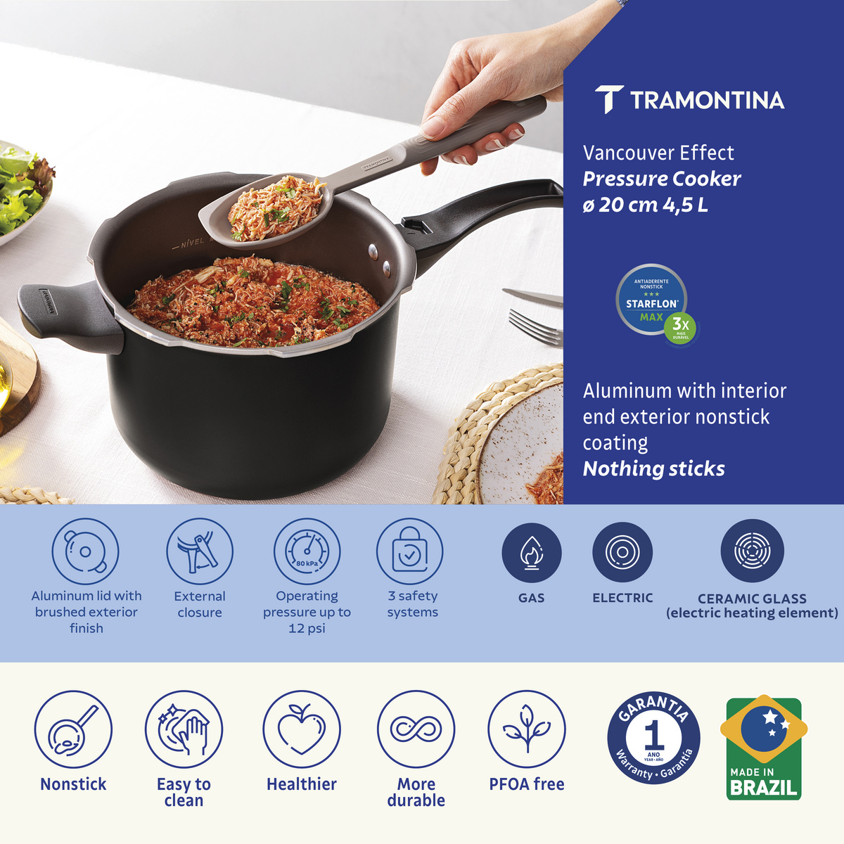 TRAMONTINA PRESSURE COOKER 4.5 LTR 20 CM 20591/420 quantity
